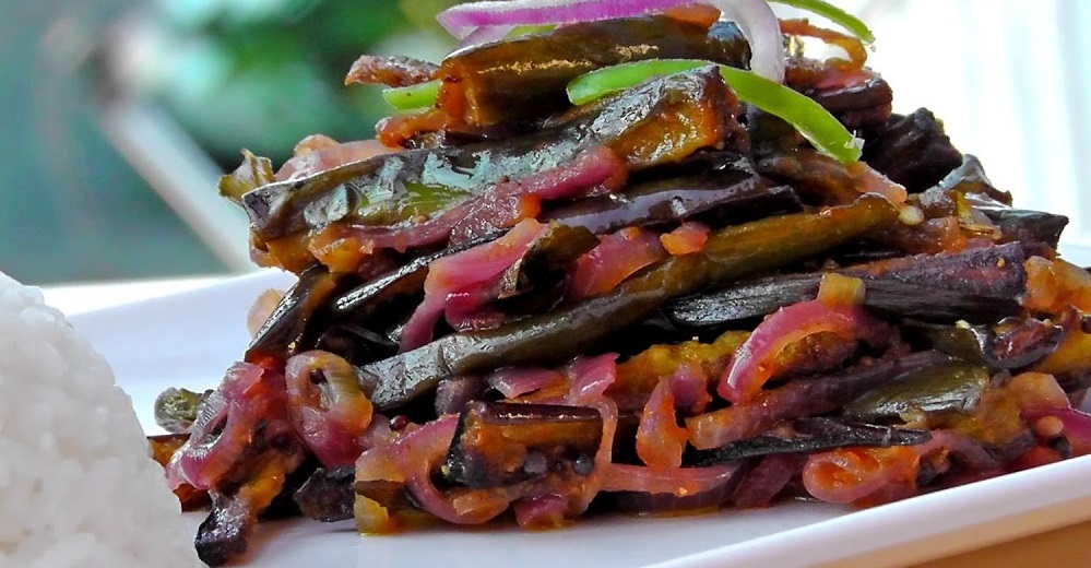 An absolutely sensational local delicacy and usually served with rice and curry, Wambatu Moju is an extremely juicy and flavourful Eggplant pickle. The eggplant is finely sliced, deep fried, and then caramelised with sugar, red onions, and local spices until the colour turns almost black. Take a bite of this dish and watch how the crispy eggplant and spicy flavours create a furore in your mouth.