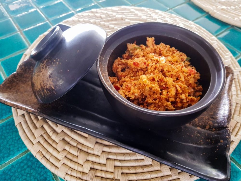 Most commonly used as a garnish or as a side dish with almost everything, it is an inseparable part of their staple diet. A simple blend of finely grated coconut, red onions, chili powder, lime juice, salt with an addition of Maldive fish at times. If you love coconuts, then you will truly enjoy this dish and your heart will keep wanting more!
